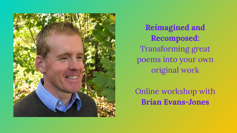 Brian Evans-Jones is a poet and teacher from Britain who now lives in Sharon, NH. He was Poet Laureate of Hampshire, England, before moving to New England in 2014 to do his MFA at the University of New Hampshire. He won the Maureen Egan award from Poets & Writers in 2017, and his poems have been published in journals and contests on both sides of the Atlantic. He has taught poetry in colleges, schools, and workshops, as well as online through his website The Poetry Place, where he publishes resources on poetry and creativity.
